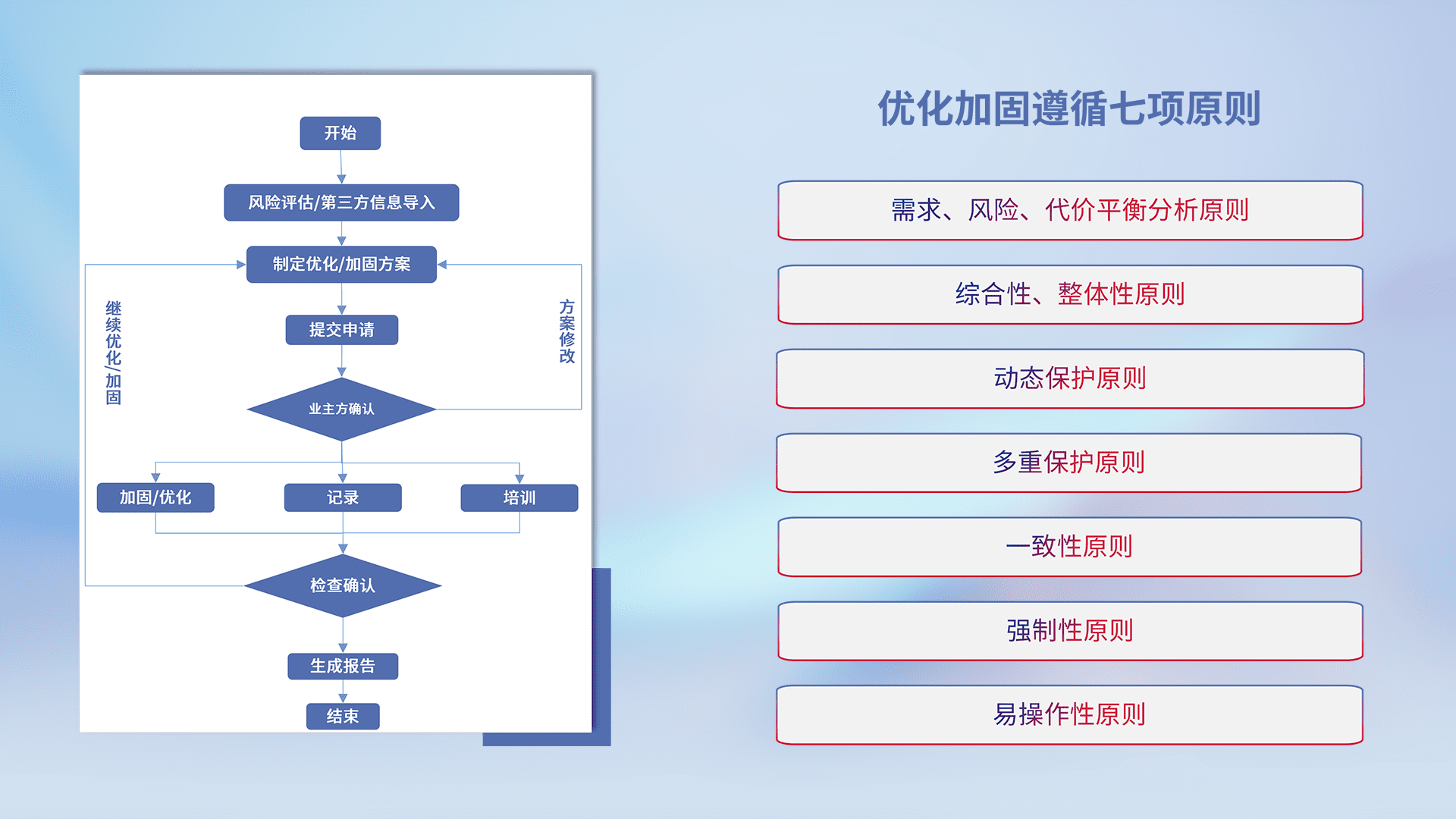 最大程度利用现有资产,,,,对评估发现的问题进行封堵与整改,,,,防止漏洞被利用,,提升整体网络安全性,,,,为客户带来高标准的优化加固服务。。。。